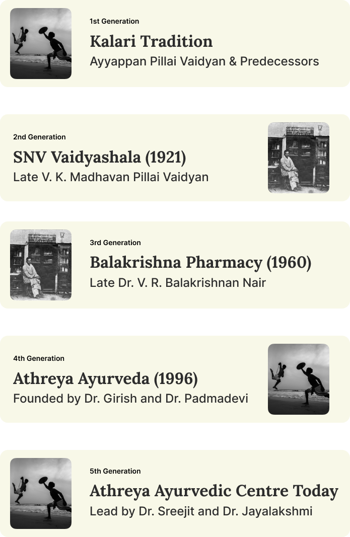 The story of Athreya began long before the centre itself — in a family devoted to the study and practice of Ayurveda for generations.