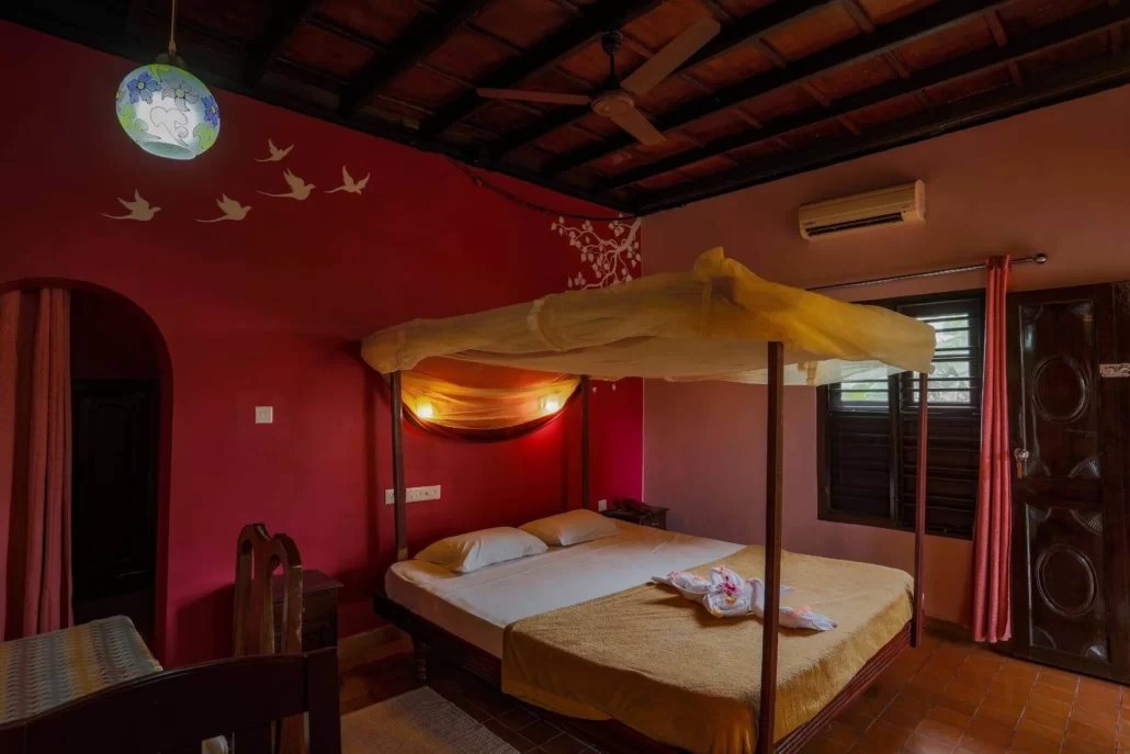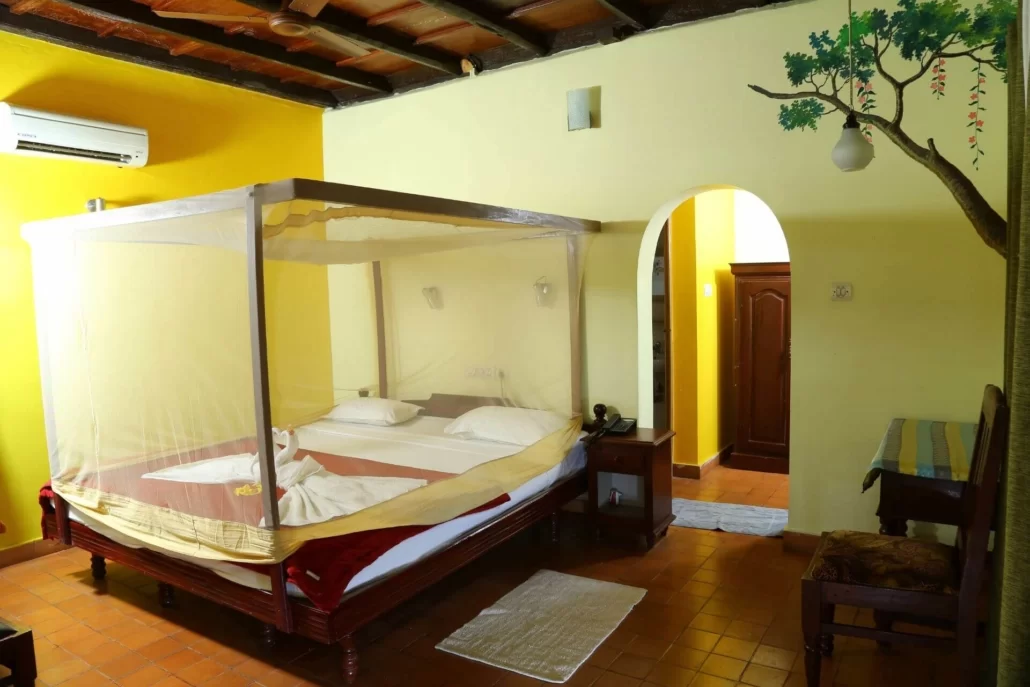 Athreya’s campus is nestled among lush paddy fields and its own herbal garden, creating an environment where healing feels both natural and effortless. Our sustainably built Kerala-style guest cottages and serene private island wing offer quiet spaces for rest, reflection, and rejuvenation. Each accommodation includes an en-suite bathroom, air-conditioning or fan, and a private terrace — with mosquito nets available upon request.