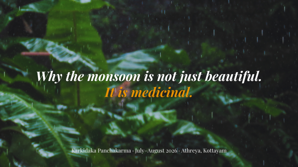 At Athreya Ayurvedic Centre in Kottayam, Kerala — where classical Panchakarma has been practiced by the same doctor family for over 600 years — Karkidaka is not a marketing season.
